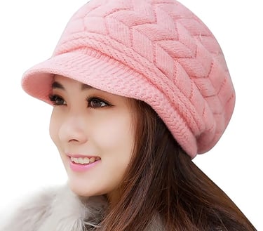 Womens Winter Beanie Hats Thick Warm Knitted Chunky Soft Slouchy Cap with Visor Brim
