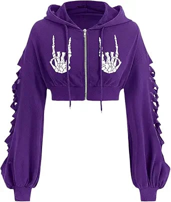 Edgy Purple Cropped Hoodie with Statement Print